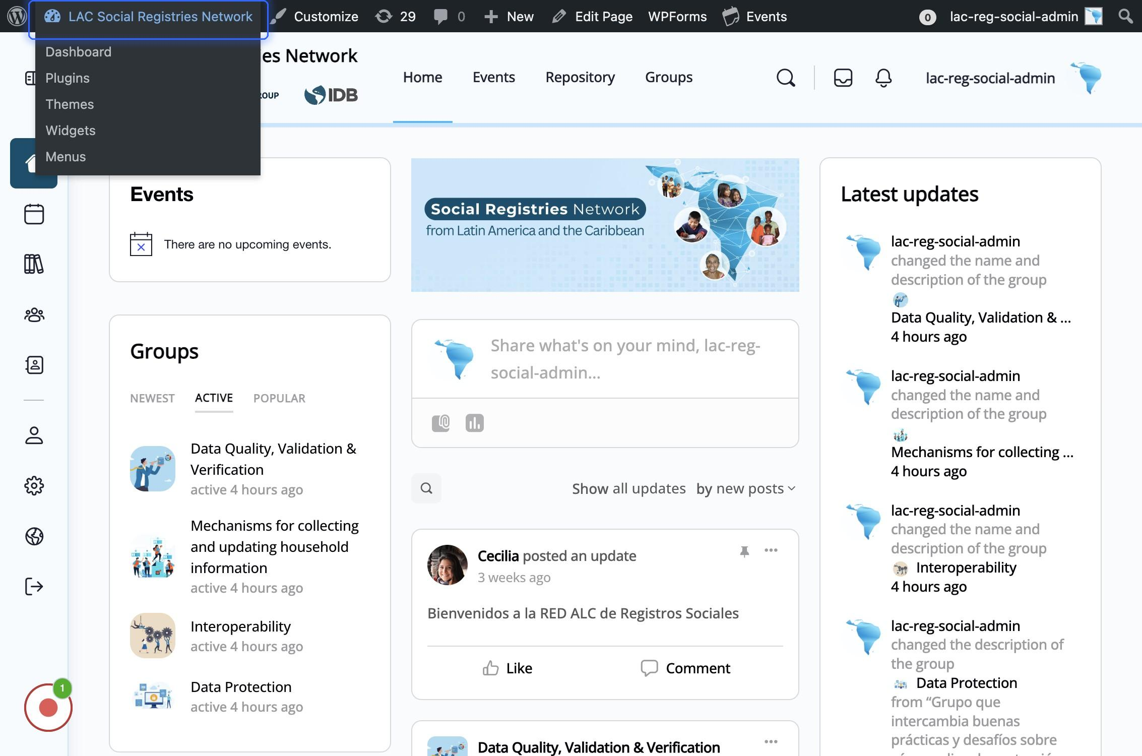 Entrar en el Dashboard de Administración: Hacer click en "LAC Social Registries Network"